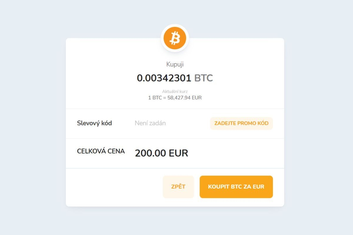V dalším okně potvrďte nákup kliknutím na „Koupit BTC za EUR“.