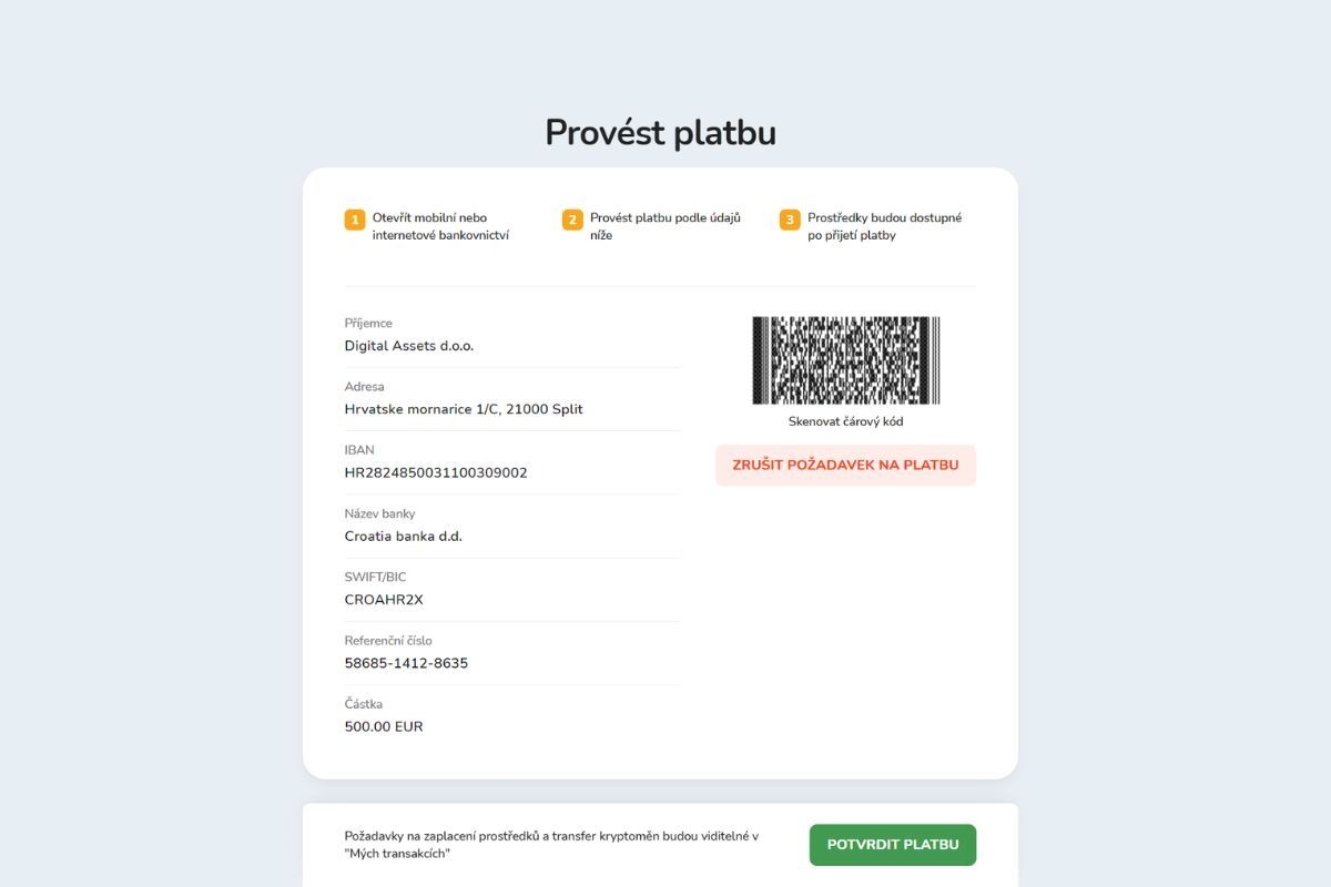 Po provedení platby klikněte na „Potvrdit platbu“.