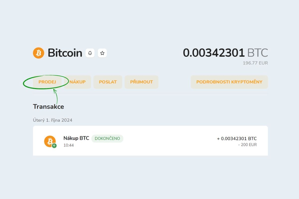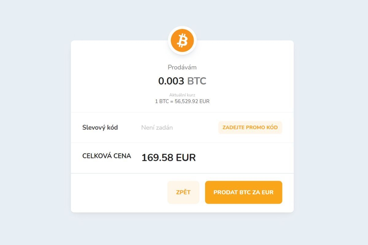Potvrďte prodej kliknutím na „Prodat BTC za EUR“.