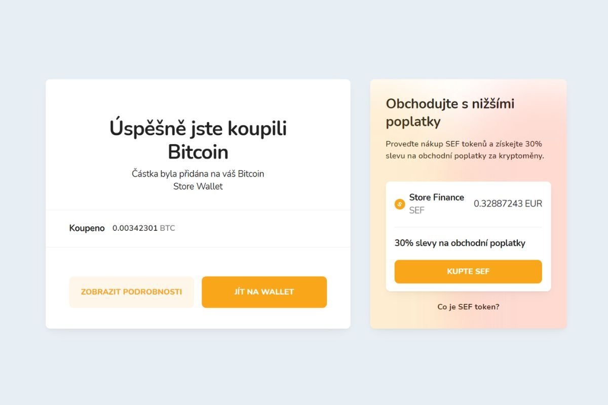 *V poznámce níže můžete vidět celkový zůstatek v EUR ve vaší Bitcoin Store Wallet.