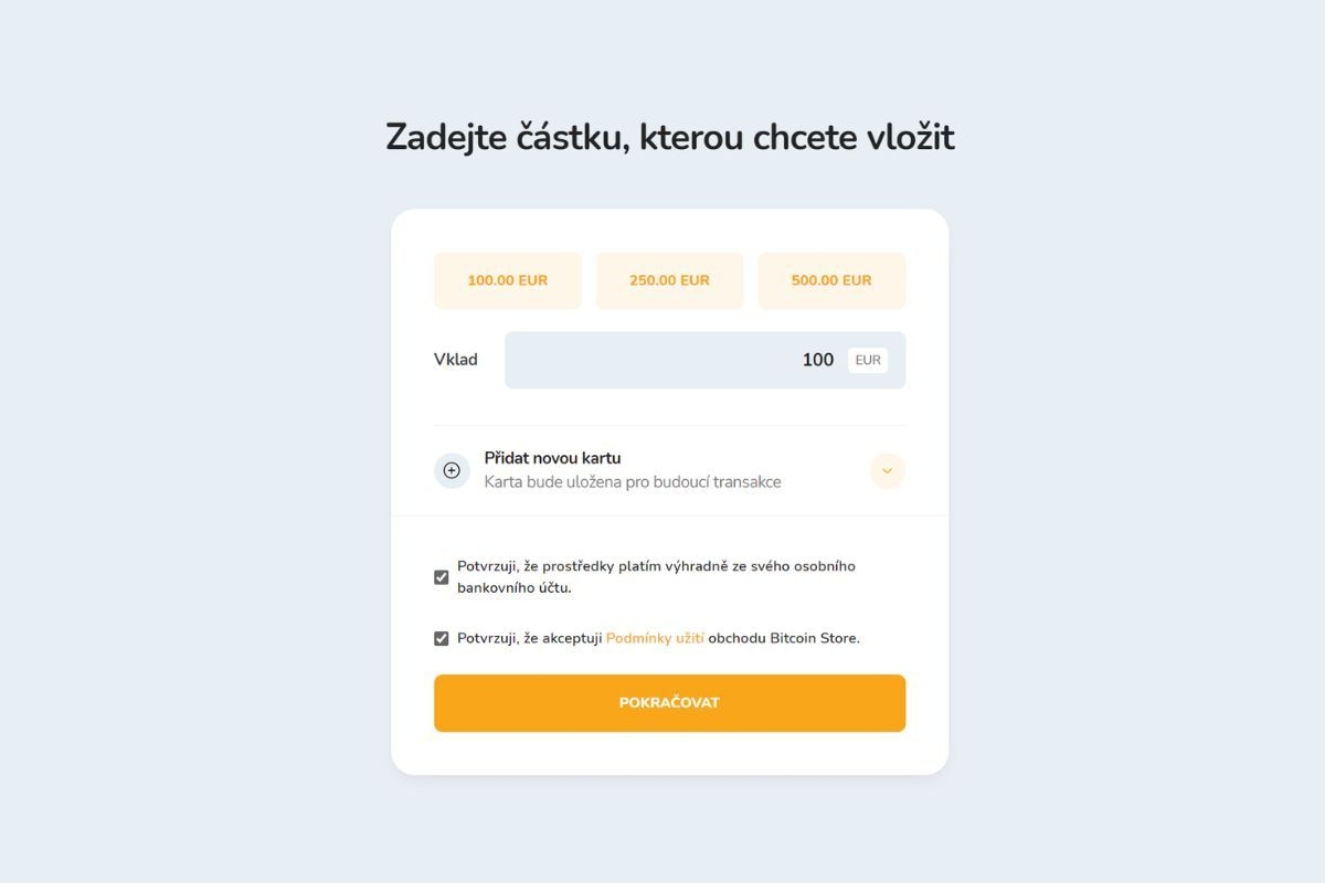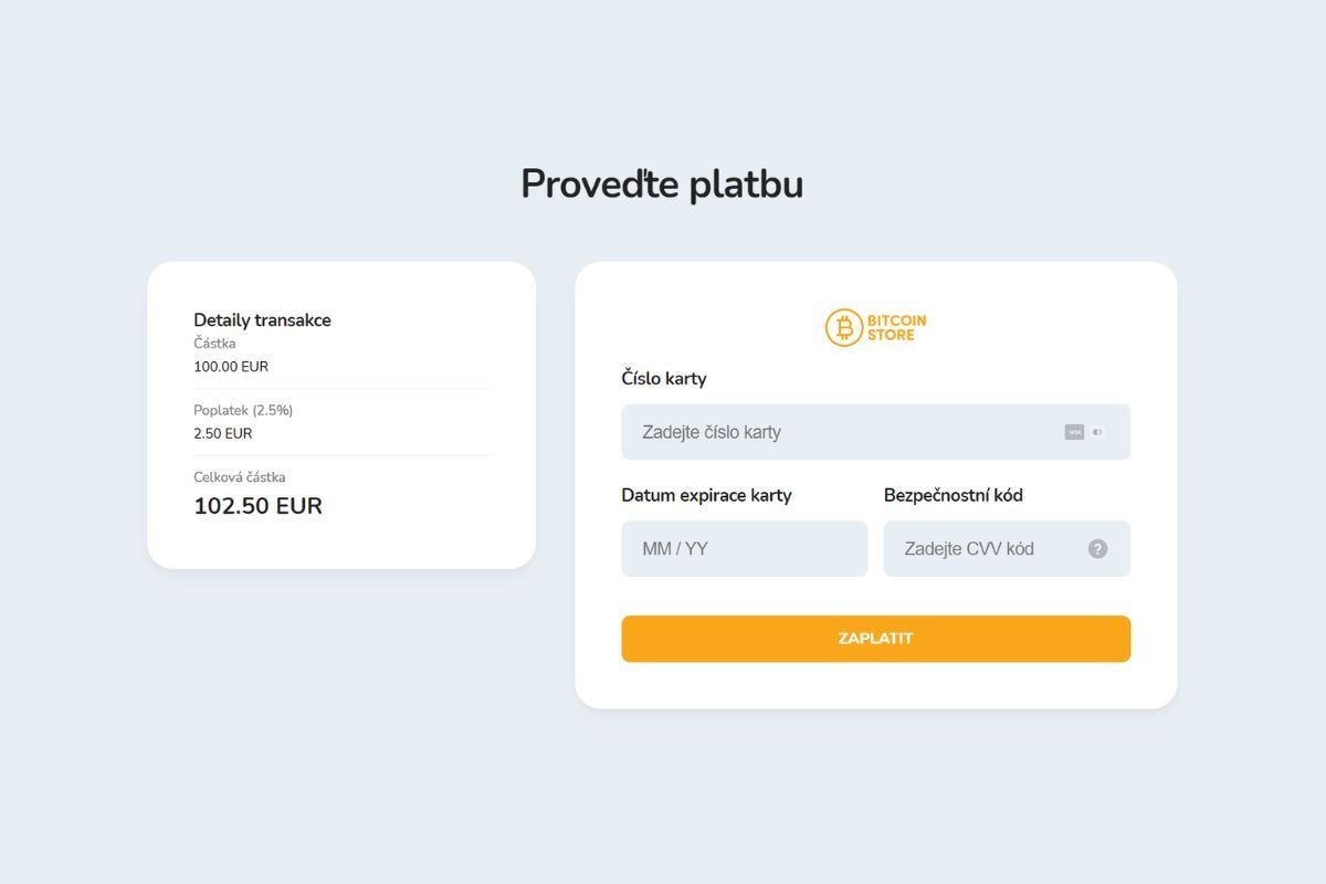 *Důležité: Jméno na bankovní kartě se musí shodovat se jménem osoby, která vytvořila účet Bitcoin Store. Není možné použít bankovní kartu jiné osoby.