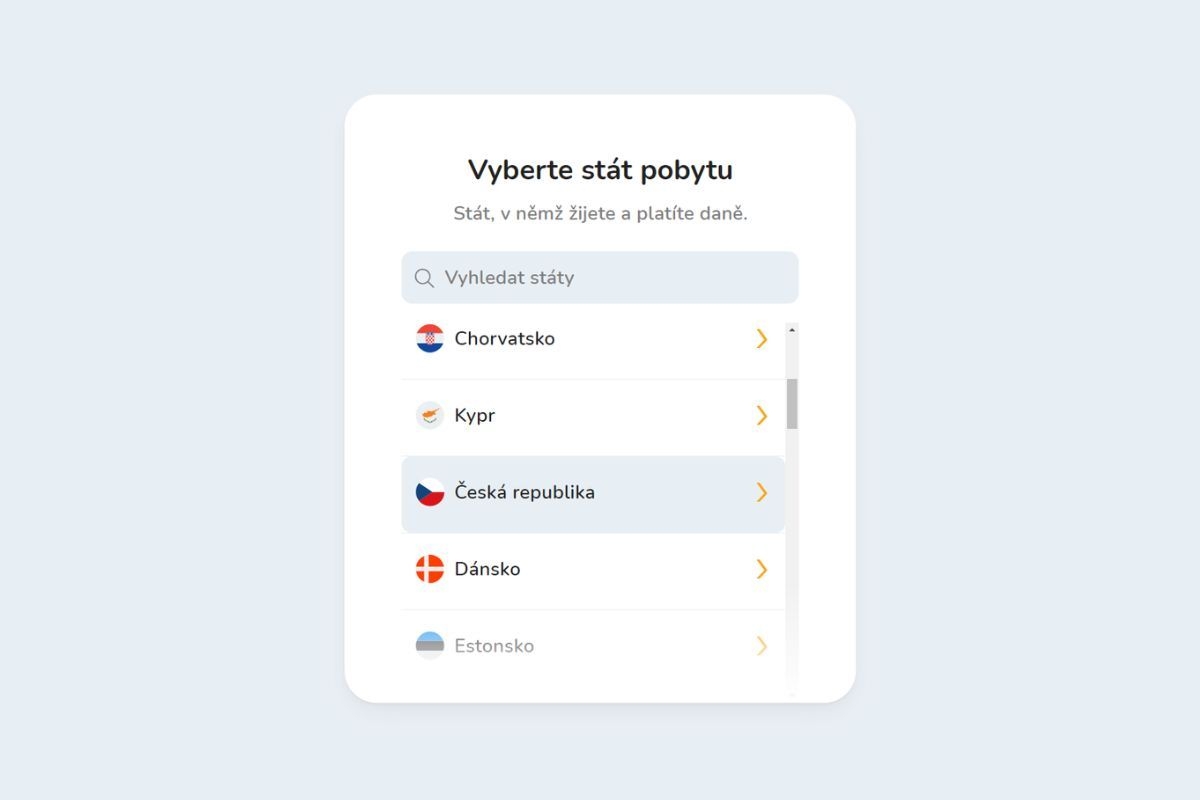 Vyberte zemi, ve které žijete a kde platíte daně.