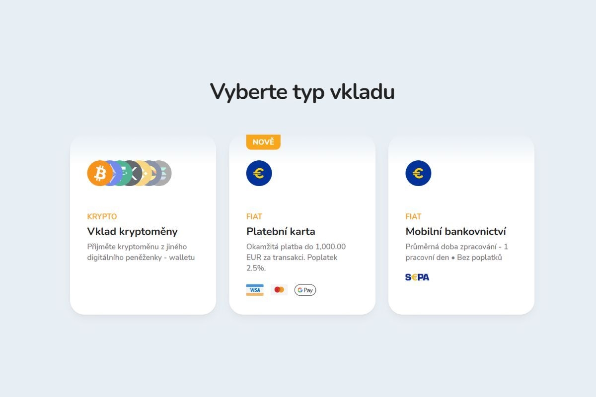 Pro nákup a prodej kryptoměn podporuje Bitcoin Store následující platební metody: