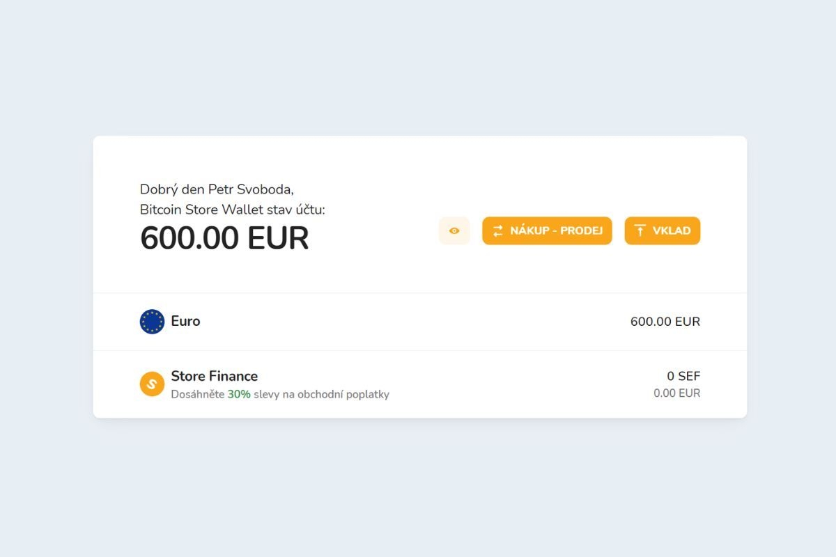 Krok 3: Vklad prostředků (EUR) do vaší Bitcoin Store Wallet