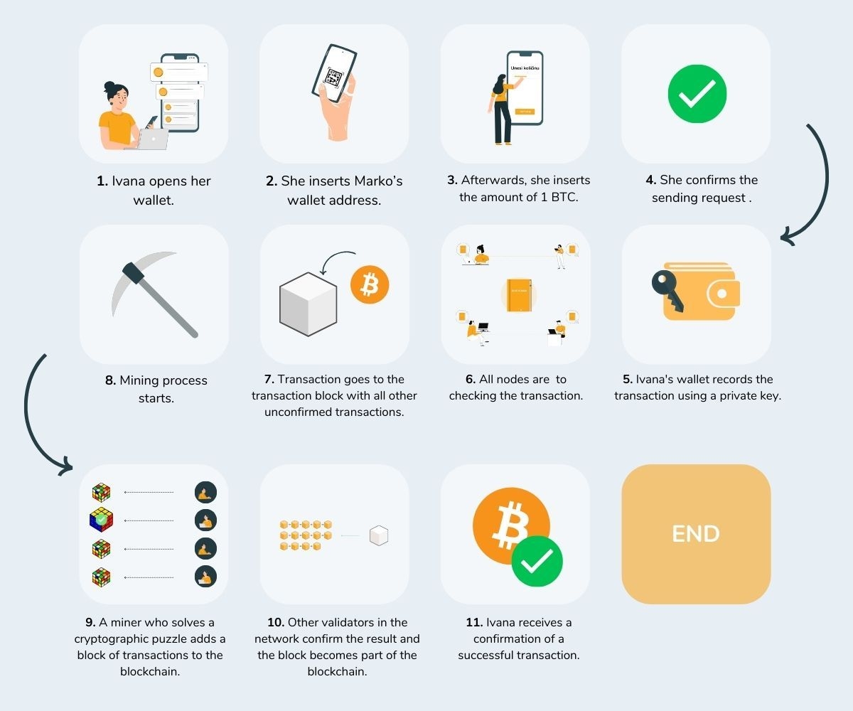 For example, let's say Ivana wants to make a transaction and send bitcoin to Marko.