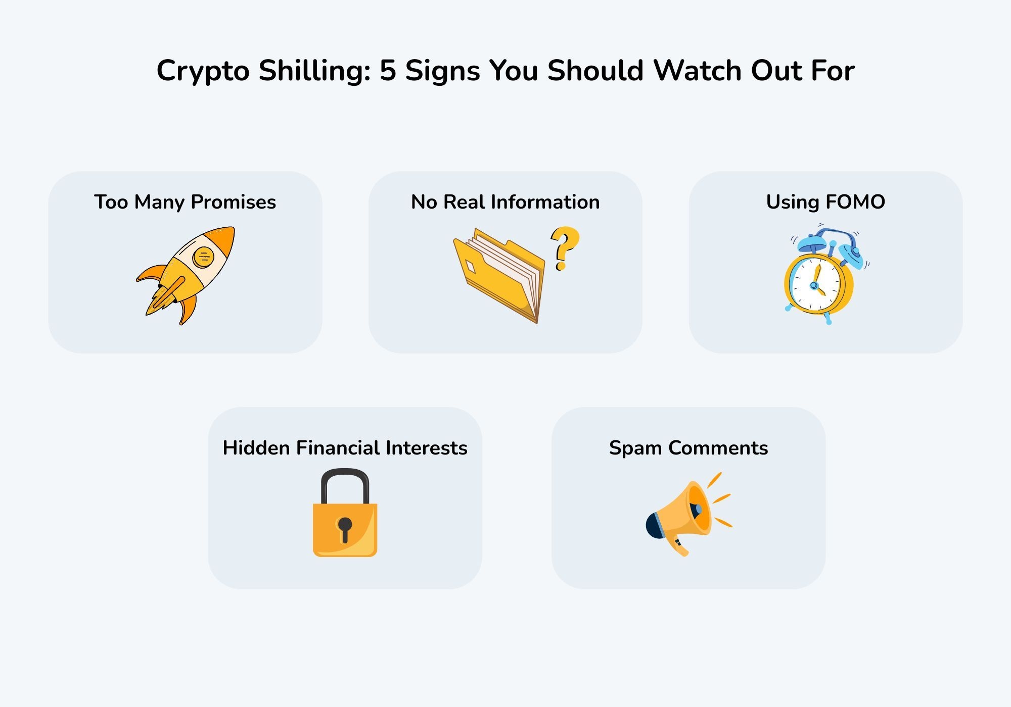 Shilling in crypto refers to covertly promoting projects for personal gain. Learn how to spot common signs of shilling and protect your investments through knowledge, critical thinking, and doing your own research.