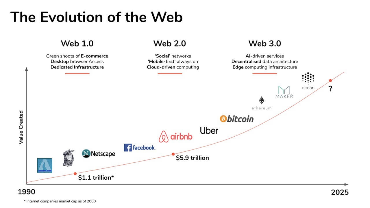 But Web 2.0 also had its downsides, most notably the centralization of large companies such as Google, Amazon, Facebook, Twitter, etc.