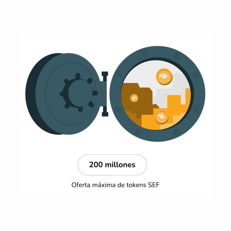Store Finance (SEF) cuenta con una oferta total fija de 200 millones de tokens, la cual nunca se incrementará. A continuación se detalla cómo se distribuyen los tokens: