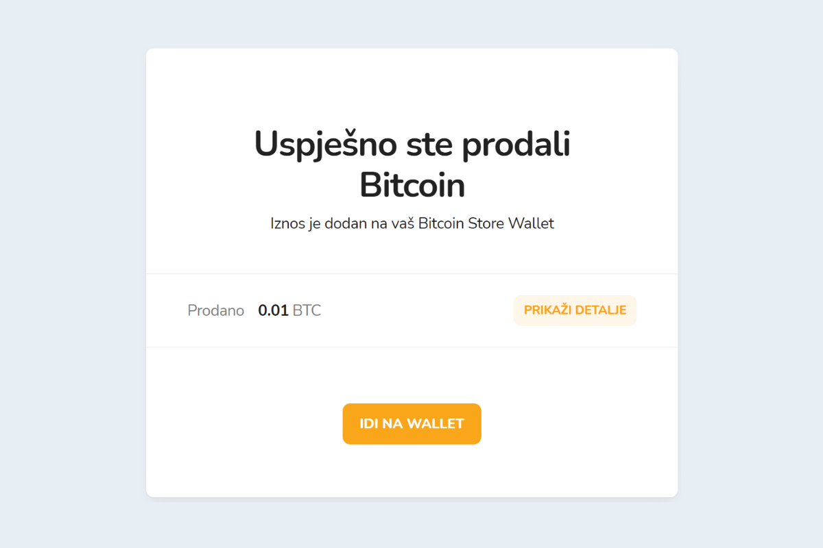 U novom stanju Bitcoin Store Walleta vidjet ćete iznos u EUR kojeg ste dobili za prodanu kriptovalutu.
