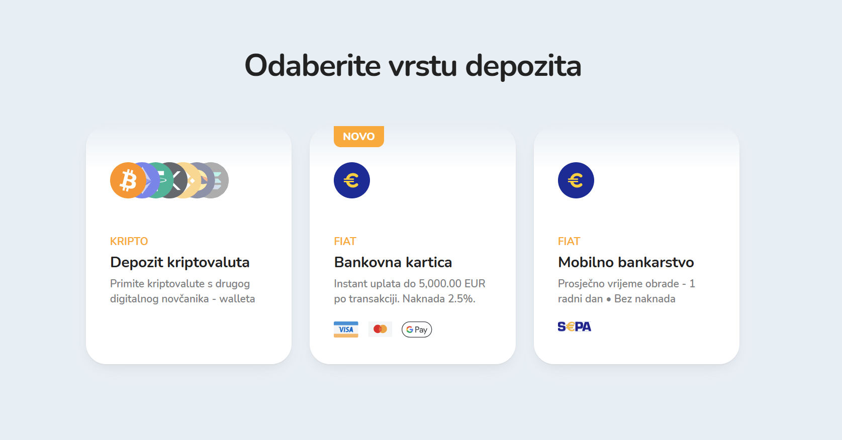 Odaberite jedan od načina uplate fiat sredstava na Bitcoin Store platformi: