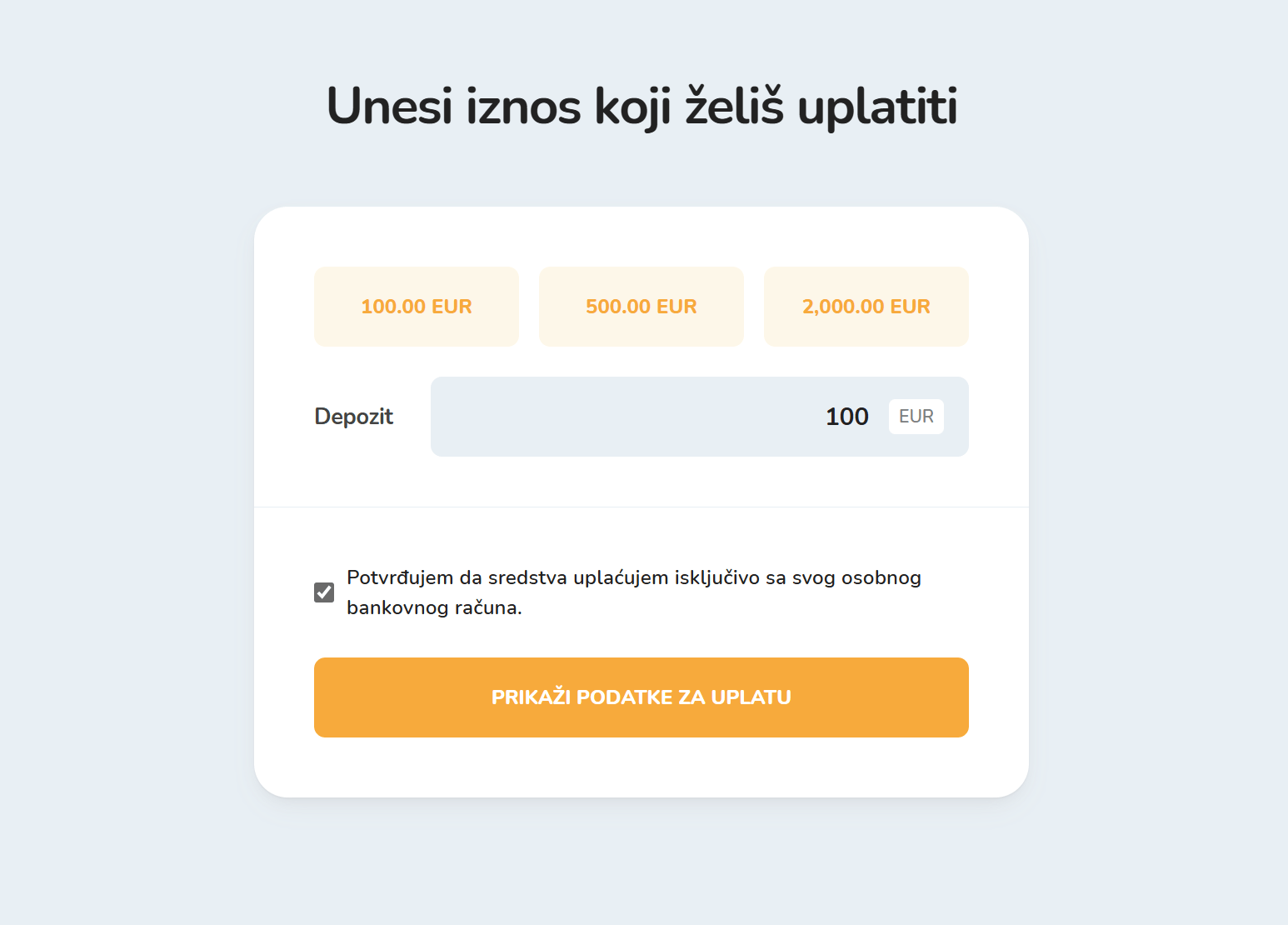 Provjerite još jednom iznos koji ste unijeli i nakon toga kliknite na potvrdu da iznos uplaćujete s osobnog bankovnog računa.