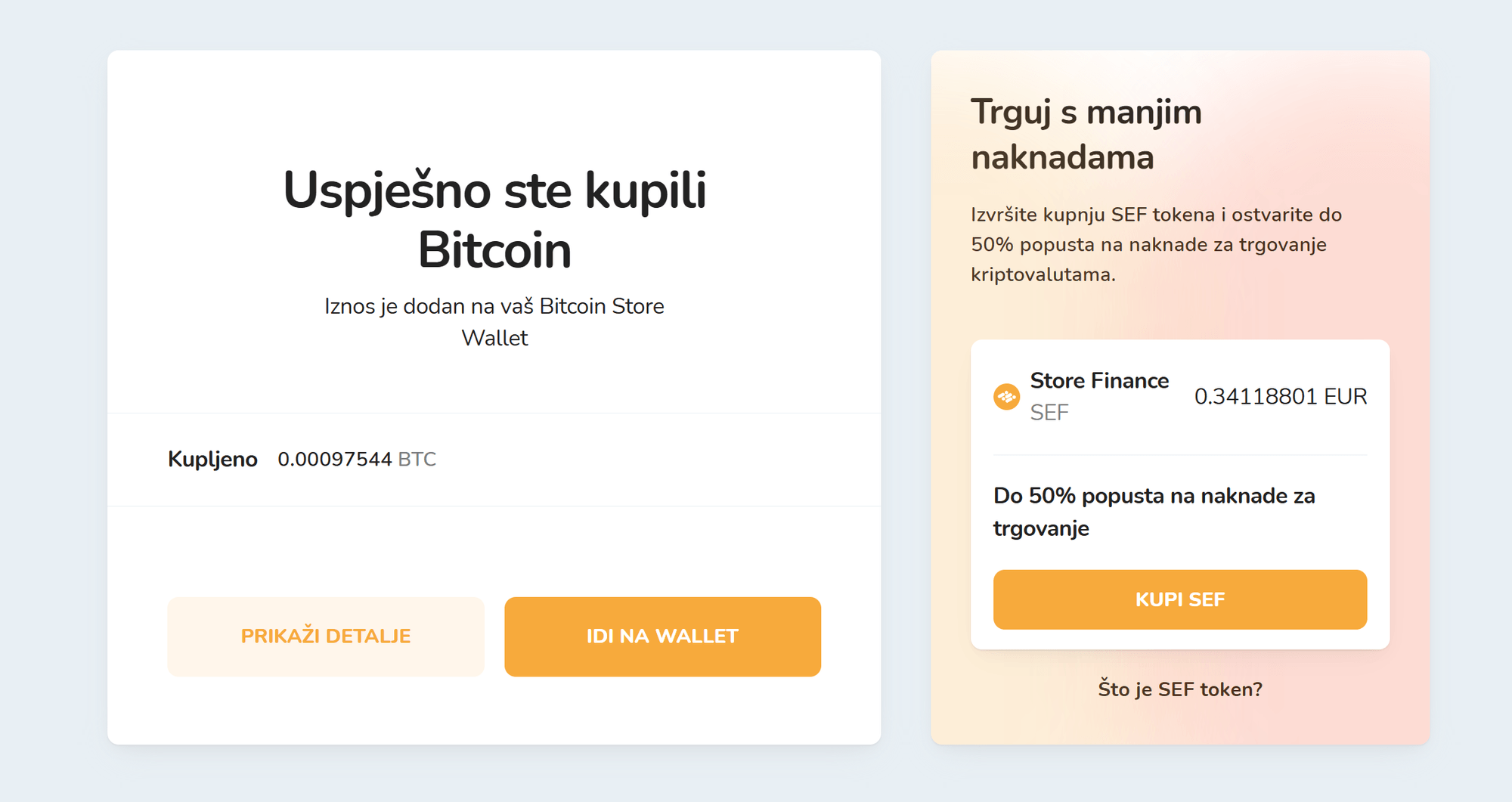 *Ako unosite količinu kriptovaluta, pazite da vrijednost kriptovaluta ne prelazi maksimalnu vrijednost EUR koje imate na Bitcoin Store Walletu.