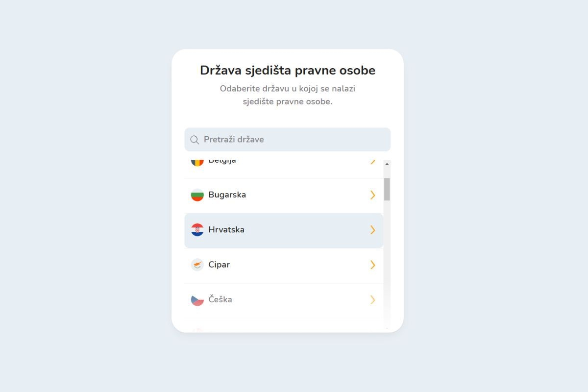 - Država sjedišta (prema zadanim postavkama prikazuje se država odabrana prilikom registracije računa)