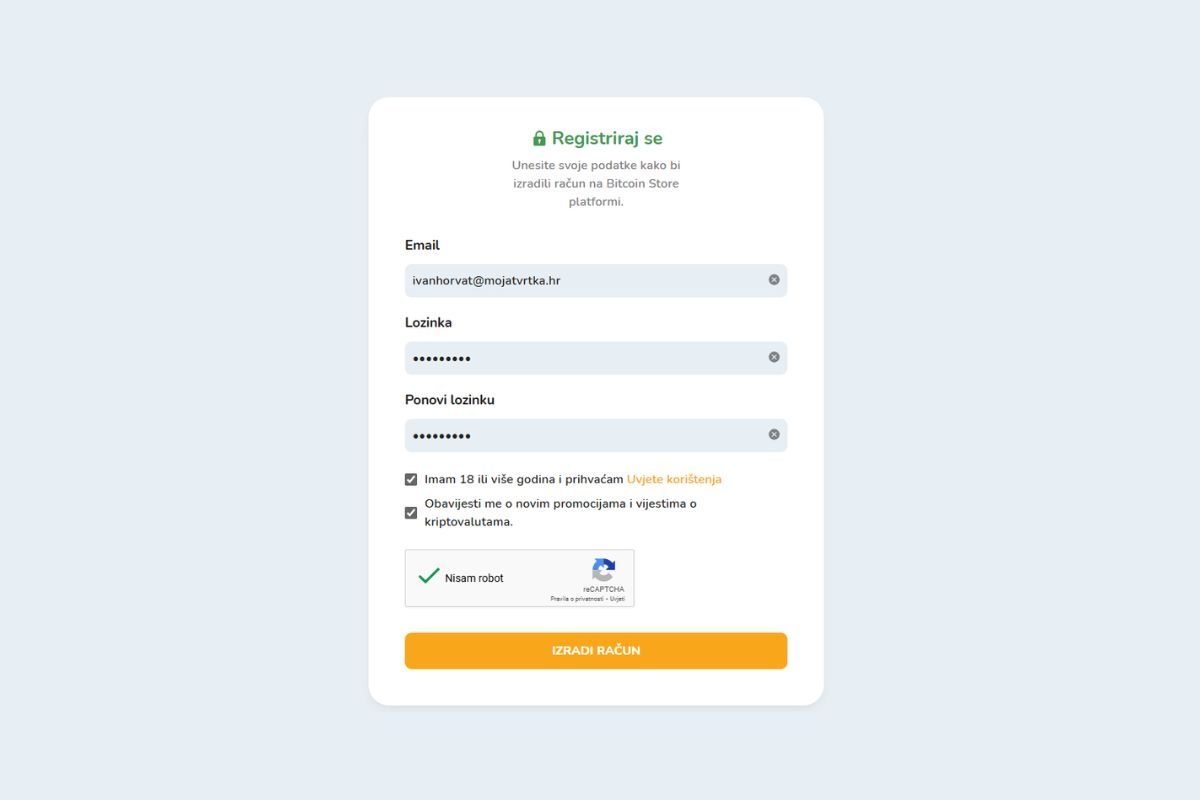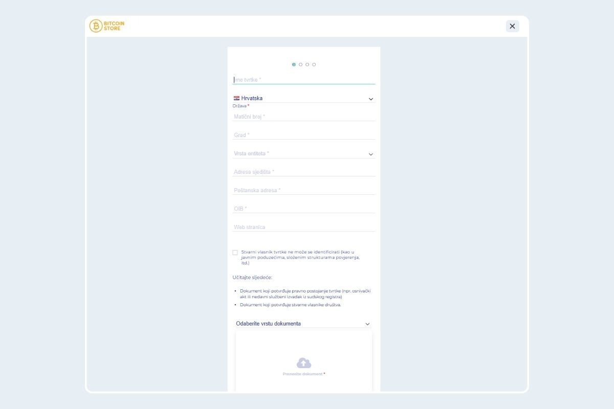 Za pristup značajkama trgovanja na Bitcoin Store platformi i izvršenje prve uplate, potrebno je verificirati poslovni račun.