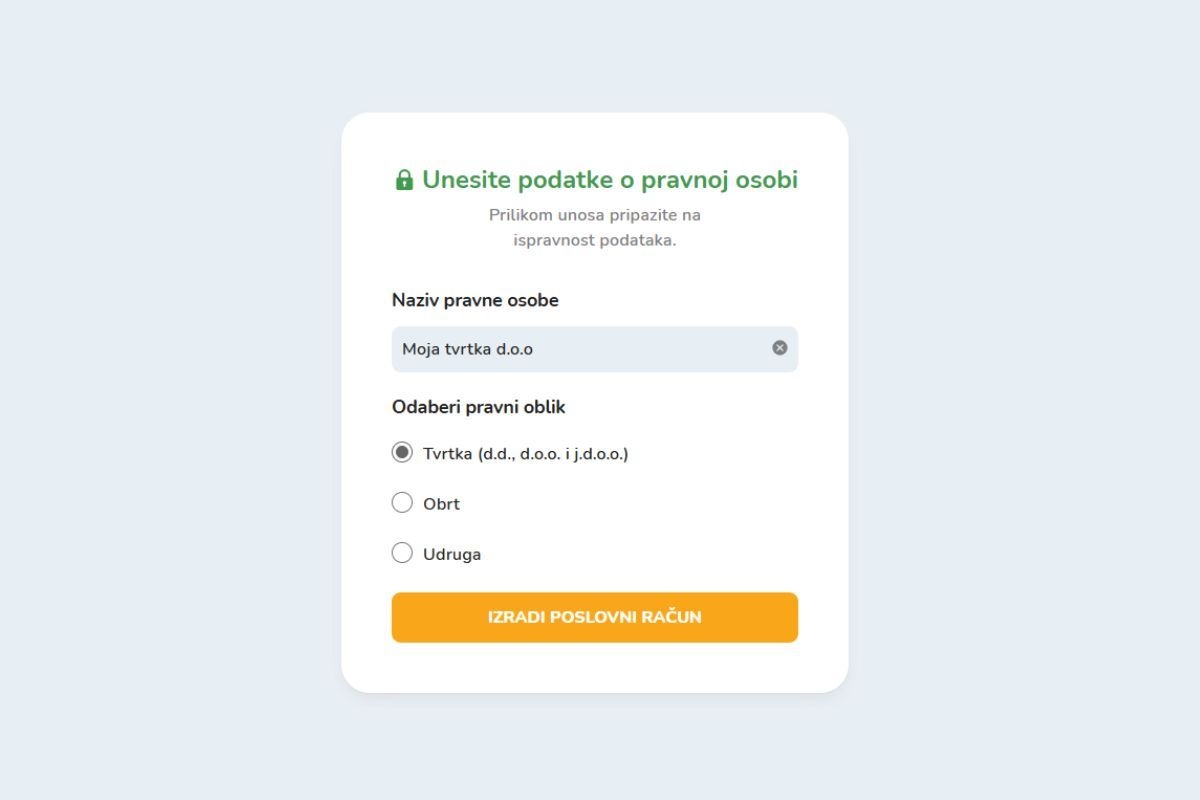 - Ime pravne osobe (npr. Moja tvrtka d.o.o.)