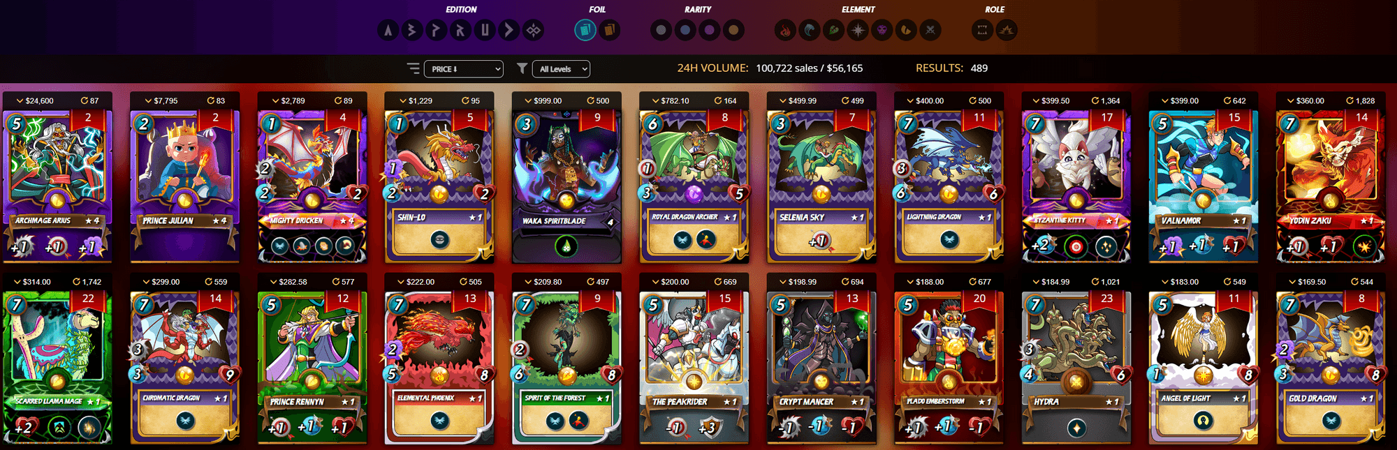Međutim, da bi napredovali u raznim natjecanjima i dobili mogućnost za osvajanje nagrada, korisnici će u nekom trenutku morati kupiti rijetke karte na NFT marketplaceu za određeni broj Ethereum kriptovalute.