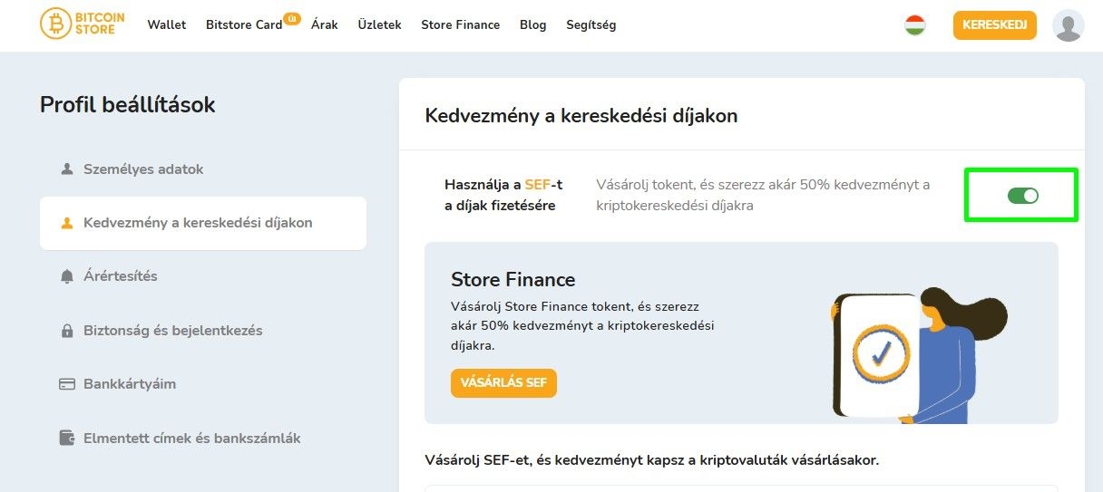 Az SEF tokent kis díjak kiegyenlítésére használhatod a Bitcoin Store platformon.