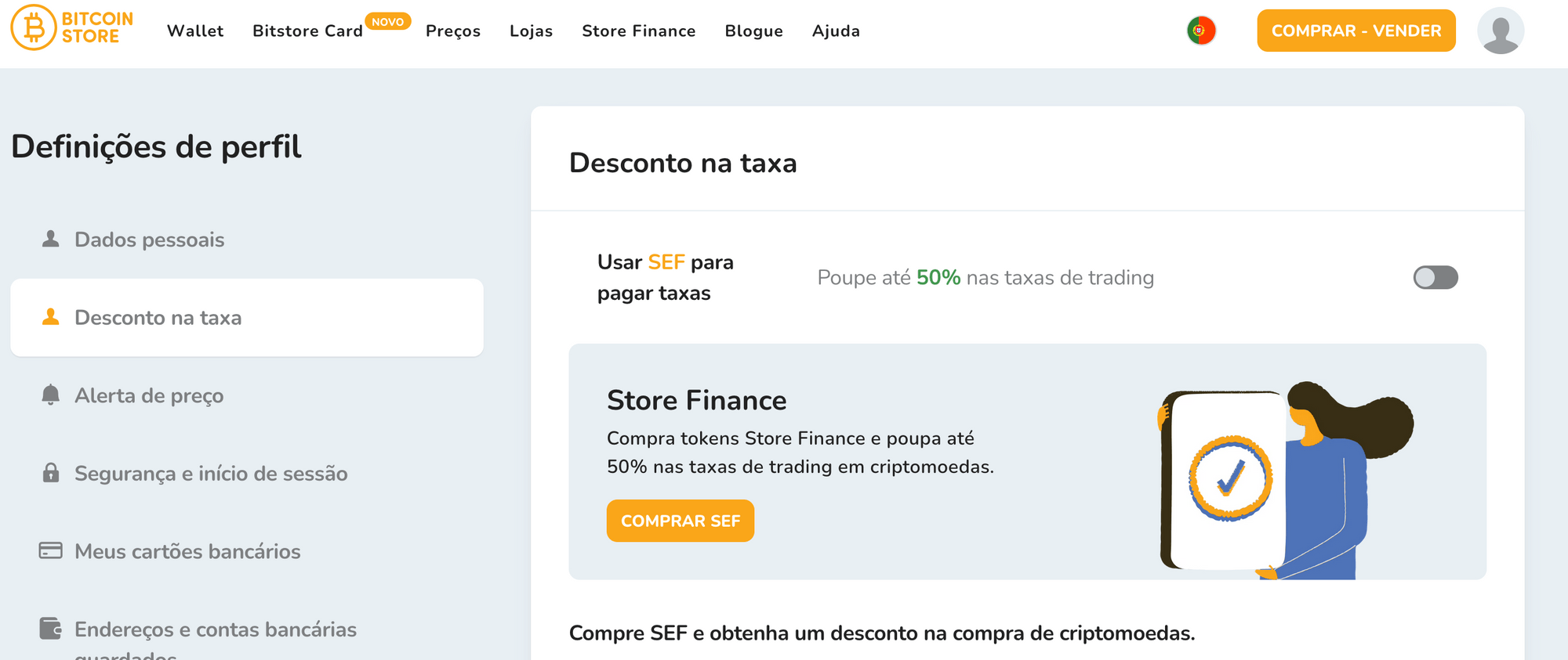 O token Store Finance (SEF) traz duas vantagens principais para os utilizadores da Bitcoin Store: taxas de negociação mais baixas e acesso a um cartão cripto VISA para gastar criptomoedas no dia a dia.
