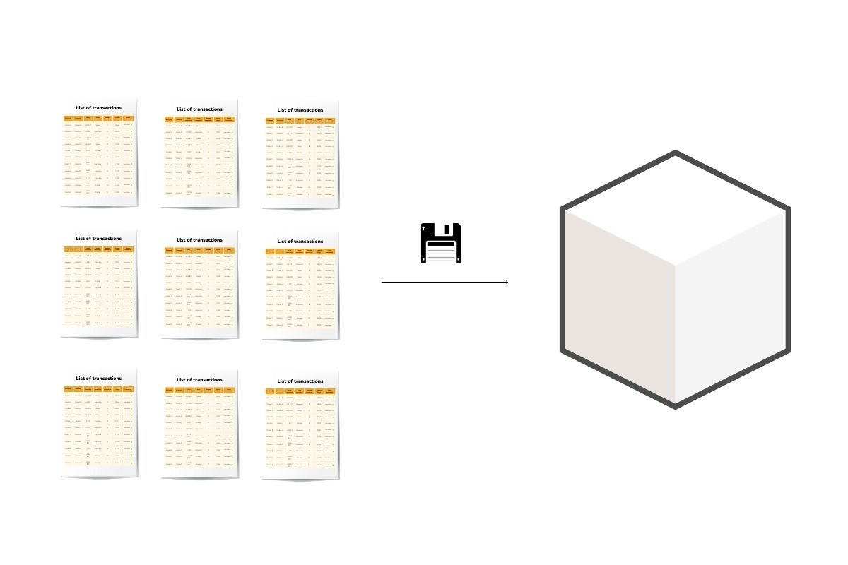 Všetky zoznamy obsahujúce údaje o transakciách sa zhromažďujú a ukladajú do jedného bloku (obrázok nižšie).